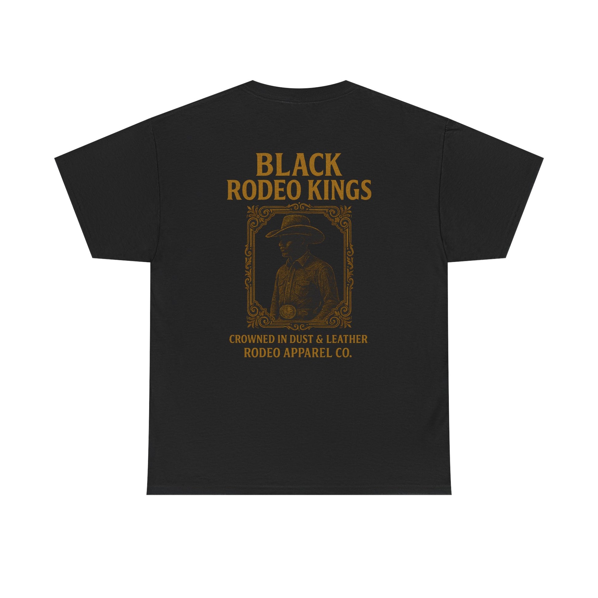 This powerful design from Rodeo Apparel Co. honors the legacy and pride of Black cowboys in western history. Featuring an etched silhouette of a proud rider framed by an ornate vintage border, the centerpiece includes a glinting gold championship buckle – a symbol of earned respect and excellence. Rendered in a monochrome palette with rich contrast and fine detailing, this tribute evokes the dusty arenas and unshakable spirit of the rodeo.