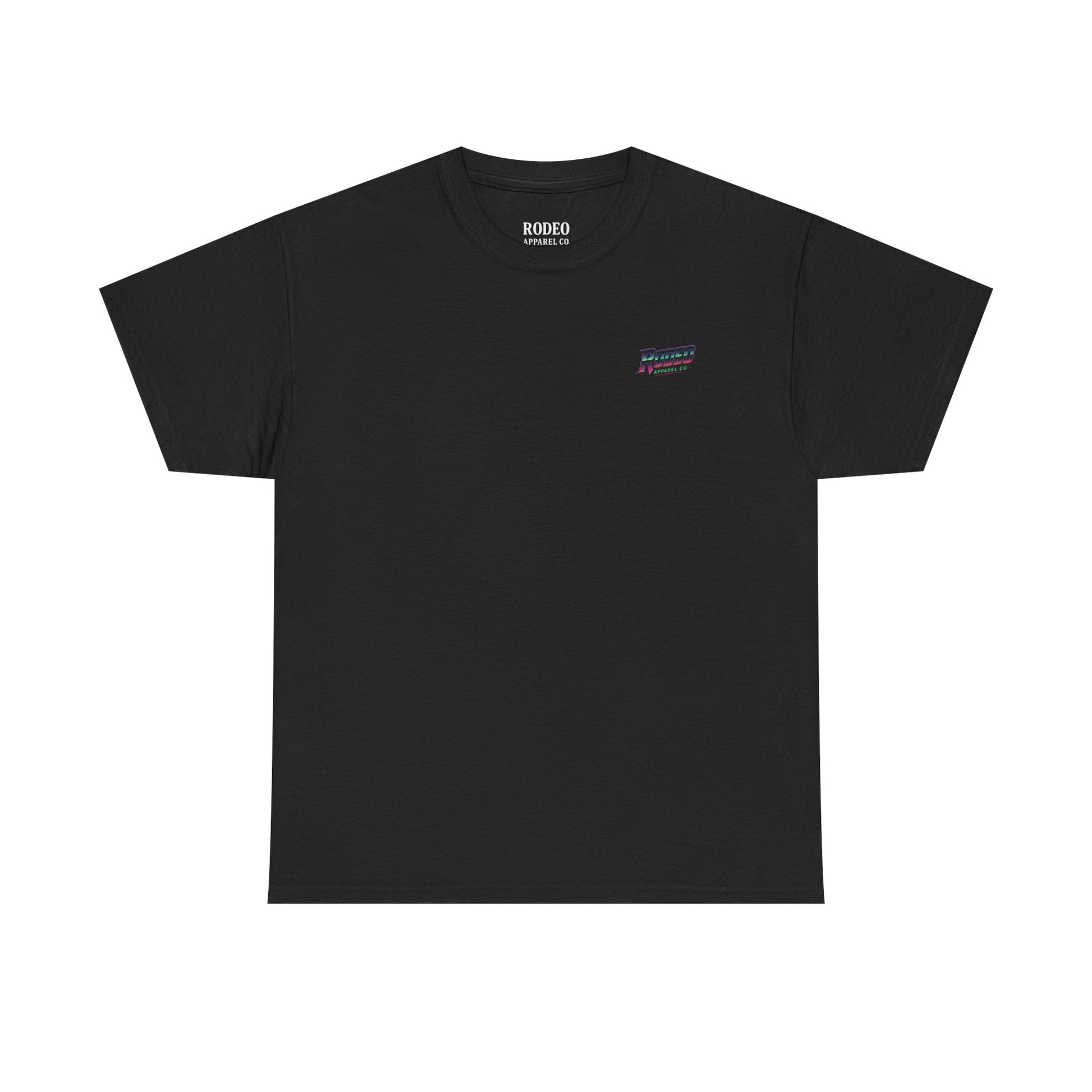 Turn up the neon and ride into the afterlife with Ghost Rider '84, a bold fusion of retro-futurism and outlaw grit. This electrifying design features a skeletal cowboy with glowing bones riding a translucent spectral horse across a digital desert grid. A cosmic eclipse looms in the sky, casting a purple-green glow while neon smoke trails ripple through the night. With vintage arcade energy and Western edge, this tee is a tribute to the legends who ride beyond the grave.