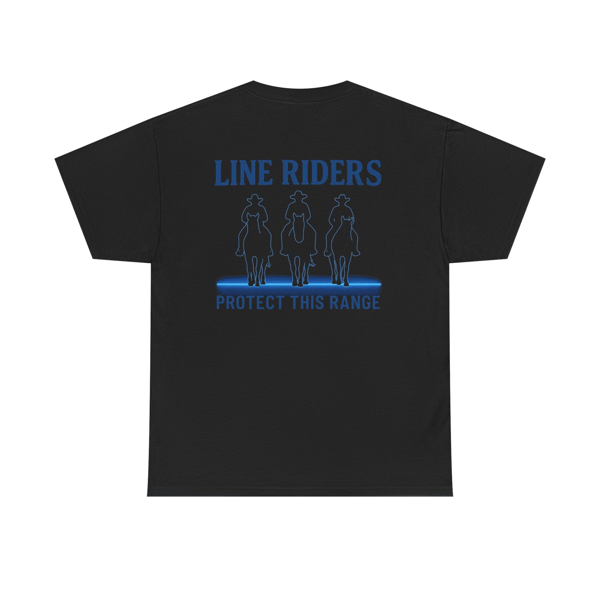 Paying tribute to those who ride for something greater, the Line Riders tee captures the grit, duty, and brotherhood of law enforcement through a bold Western lens. Featuring three cowboy silhouettes on horseback crossing a glowing blue line, this design honors those who stand the line with courage and pride. Clean outlines, vintage texture, and a powerful color palette make it a standout for anyone who backs the badge and respects the range.